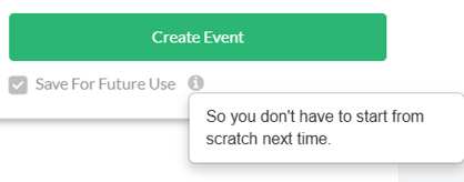 Once you fill in the details and set the date/time, make sure to check the "Save for Future Use" option below the "Create Event" button.