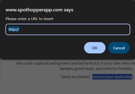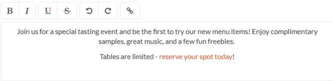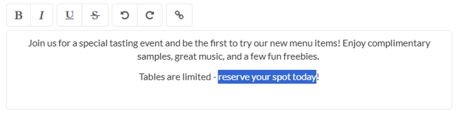 You can also hyperlink text to make it clickable and direct guests to a specific page — for example, link "Reserve" text to your reservations page. To do so, select the text you wish to make clickable,