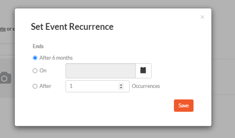 6. Now that your event details are filled in, you need to set up the Event Time and save the event. Depending on whether and how your event repeats, you have a few options.
