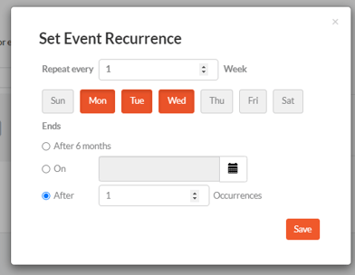 - Choose specific days of the week and set the event to repeat every week or a set number of weeks