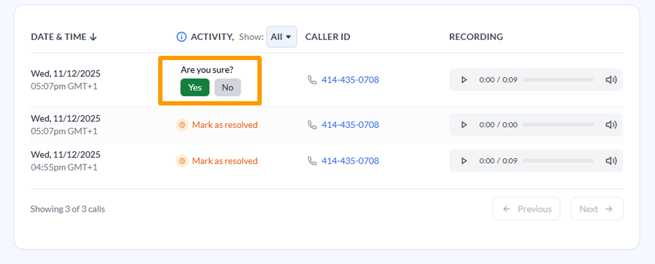 Once resolved, click the "Mark as Resolved" button under Activity and choose "Yes."