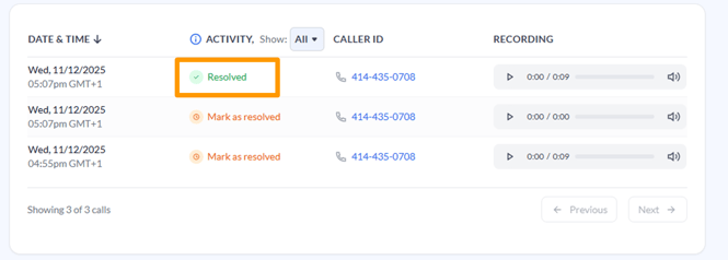 This will open a page where you will see a list of the call history along with the recorded messages.