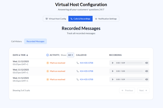 Tip: Taking the time to complete the Setup Wizard carefully ensures your Virtual Host provides accurate, helpful responses to every caller.