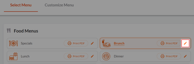 2. On the Select Menu page, open the menu you wish to update by clicking the associated pencil icon.