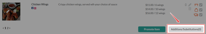 1. Find the menu item you wish to customize and click the gray "Additions/Substitutions" button on the right side.