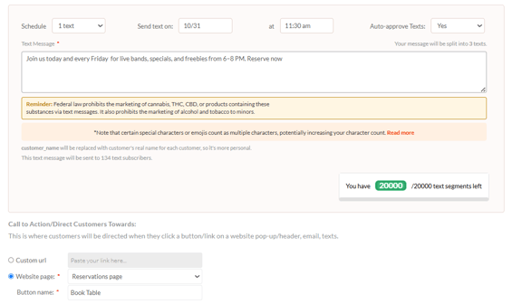 Text Message Preview: You can find your scheduled text under Marketing → Texting. You can review and edit the text blast directly from there.