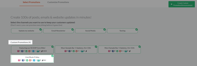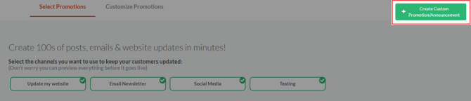 From the top right of the page, click the green "Create Custom Promotion/Announcement" button.