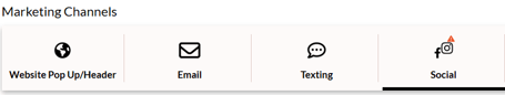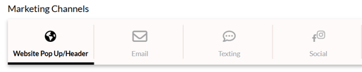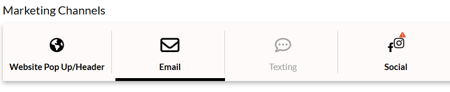 Once you’ve filled out the basics, move through each marketing channel section (Website, Email, Texting, Social) to complete your setup.