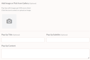 Make sure to select "None" if you do not want to update your website (for instance, you only wish to promote via email or social media). - Add the content of your pop-up (title and subtitle are optional) and upload an image if you'd like to.