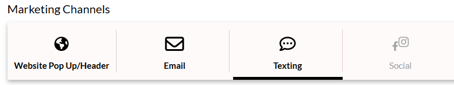 The Texting tab on the promotion template is for creating your marketing text messages.