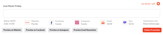 After saving your custom promotion, the details will collapse so you can preview how your campaign looks across all channels.