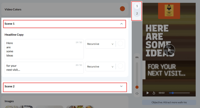 The video editor allows you to edit each scene individually. If your video has multiple scenes, you can switch between them and customize each one separately.