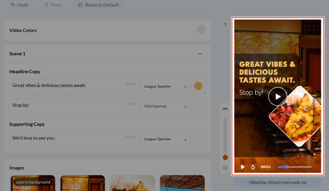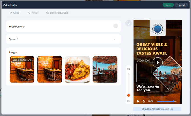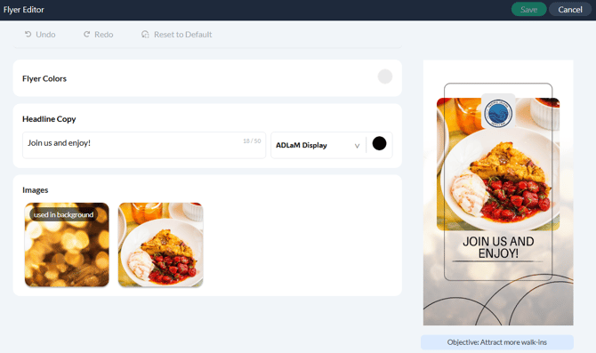 If you're satisfied with your changes, click the "Save" button in the upper-right corner. You also have "Undo" and "Redo" options, as well as a "Reset to Default" button if you wish to go back to the original template.