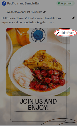 In addition to editing the flyers/videos from the Facebook and Instagram preview pages, you can also do it directly from your Home calendar page.