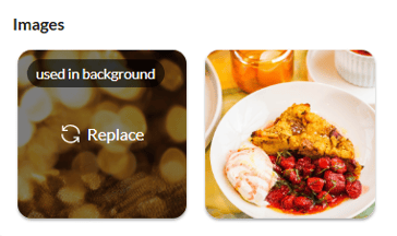 5. Replace image(s). If you hover over an image, you will see the "Replace" option. Clicking the image will allow you to choose another one from your gallery or upload a new image.
