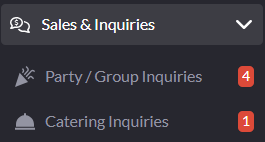 2. Navigate to the "Sales & Inquiries" cluster on the left sidebar and choose either "Party/Group Inquiries" or "Catering Inquiries."