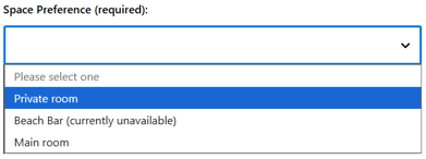Guests can select their preferred space (for example, Main Dining Room, Patio, or Private Lounge). If your venue has only one space, this field will not appear on the form. -