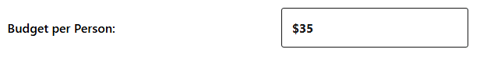 Budget Per Person – Shown only if enabled on the Parties settings page. The pre-set default budget will be shown, but customers can enter their own estimated amount.