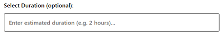- Duration (optional) – Guests can enter the estimated event length (e.g., “2 hours”).