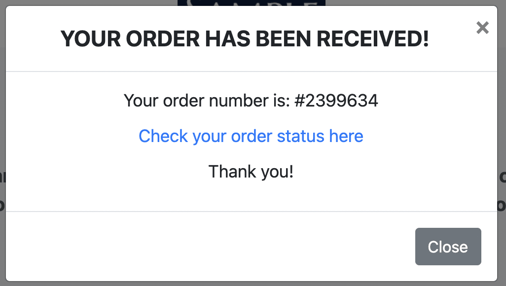 Finally, once the order has been placed, the customer will see the confirmation pop-up and will also receive an email with the order details.
