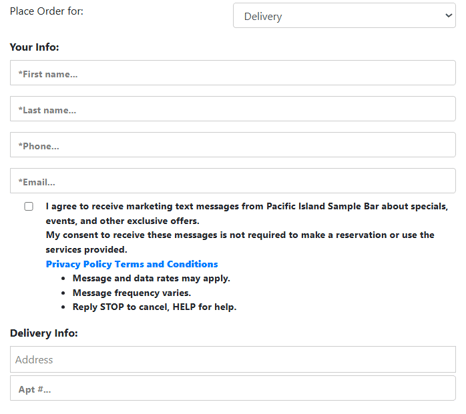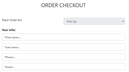 For pickup orders, the customer will need to provide their basic contact info at the top of the checkout page.