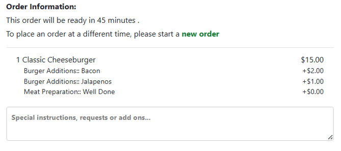 Customers also have a field here where they can add special requests or instructions for the restaurant.