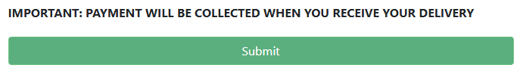 No payment information is required. The customer is informed that payment will be collected in person when they receive their order.