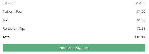 Below the restaurant tip will be the total amount they need to pay, including taxes, fees, and tips. Depending on your payment configurations, the customer can either pay at checkout or submit the order and pay later: