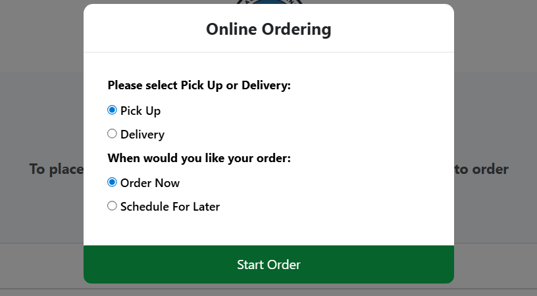 Once customers click "Start Order," the pop-up closes and they're brought to the main ordering page.
