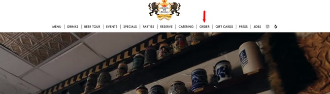 Once your SpotHopper Online Ordering system has been activated, customers can access the Online Ordering page in several ways depending on your website setup—such as through the Order navigation tab, a homepage Order Online button, or a pop-up.