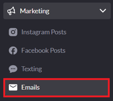 - To create an email blast, start by navigating to the "Emails" page under "Marketing."