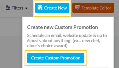 - In the top-right corner, click "Create New," then select "Create Custom Promotion."