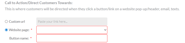 At the bottom of the screen, set the clickable CTA button. The button destination can either be a website page (Menu, Reservation) or a custom URL.