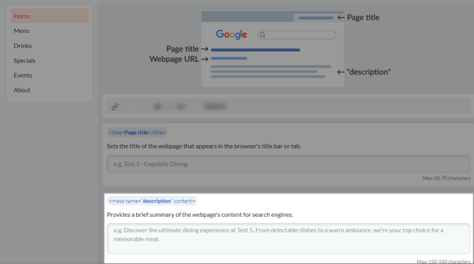 Optimize your restaurant website with SEO-friendly page titles and meta descriptions. Boost clicks, improve local search visibility, and attract more diners!