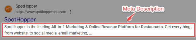 Length: Aim for 150–160 characters to avoid being cut off in search results. The image above contains a truncated description that ends in "..." Keep it short so your users can read the entire summary.