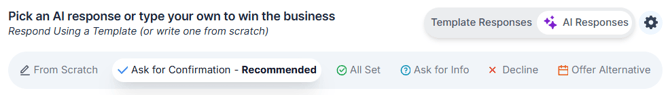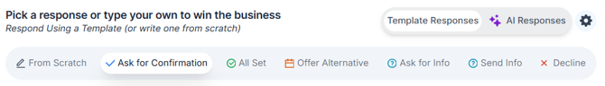 To edit or customize your templates, click the settings (gear) icon next to the Template/AI Responses toggle.