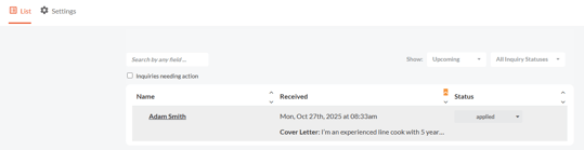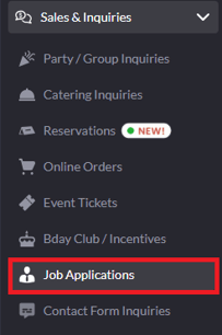 - To manage your applications, open Sales & Inquiries -> Job Applications.