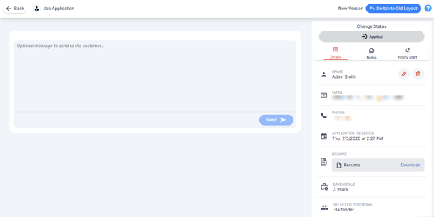 When you send a message, the system will automatically mark the status as "Waiting on Customer." Once the applicant replies, the status changes to "Waiting on You", helping you stay on top of ongoing conversations.