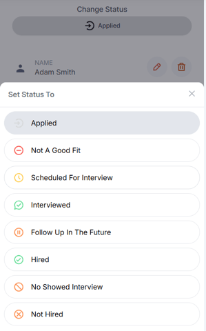 Changing an application’s status won’t send a notification to the applicant. You can freely update statuses at any time to help you track each candidate’s progress internally.