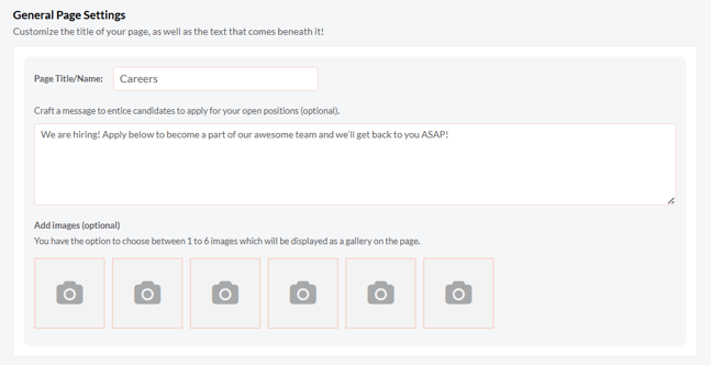 Page Description/Message to Applicants - This appears below the title and should be a short, welcoming description encouraging applicants to apply.