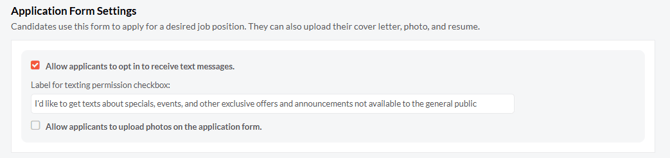 Enabling this option adds a checkbox to your job form that allows applicants to subscribe to your text list.