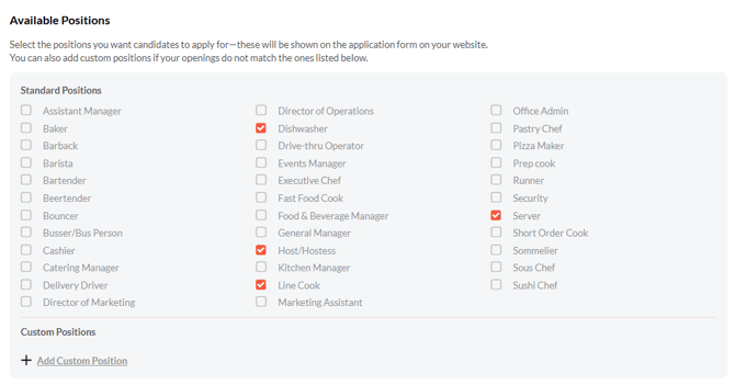 Under this section, you can define which positions are currently open and available for applicants to choose from.