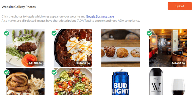- To display an image on your homepage gallery, click on the image. A checkmark will appear, indicating that the image is selected and visible on your website.