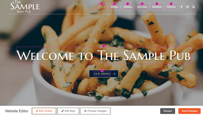 With the Inline Website Editor, you have four options to edit the content on your homepage: