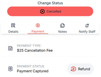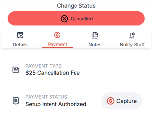 - To charge the cancellation fee, click the "Capture" button. The customer will be charged immediately.