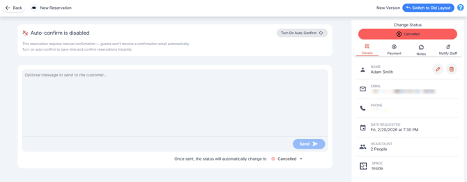 - Open the specific reservation's inquiry details page and make sure the status is set to "Cancelled."