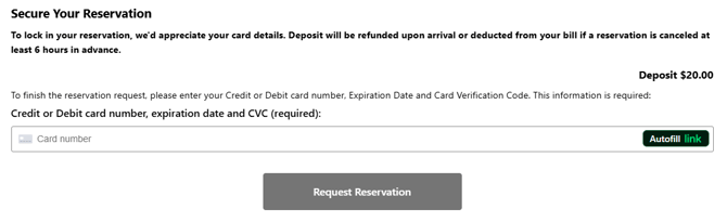 When making a reservation, your guests will need to add their credit card details and secure a deposit in order to proceed with making the reservation inquiry.