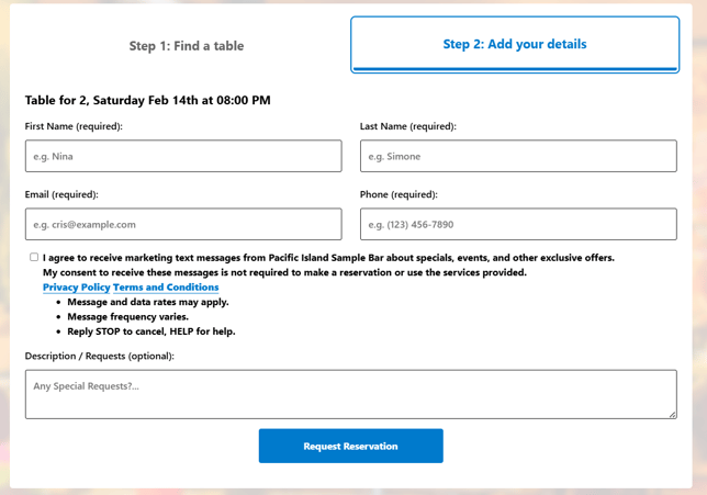 Step 2: Add Your Details - Reservation Submissions and Notifications