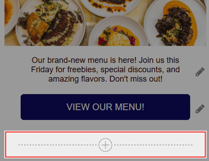Promotion emails also include a plus (+) icon at the bottom of the email preview, which lets you add additional sections to your message.