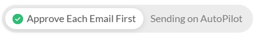 Sending on AutoPilot – All generated emails are automatically approved and will send at their scheduled time. No action is needed.